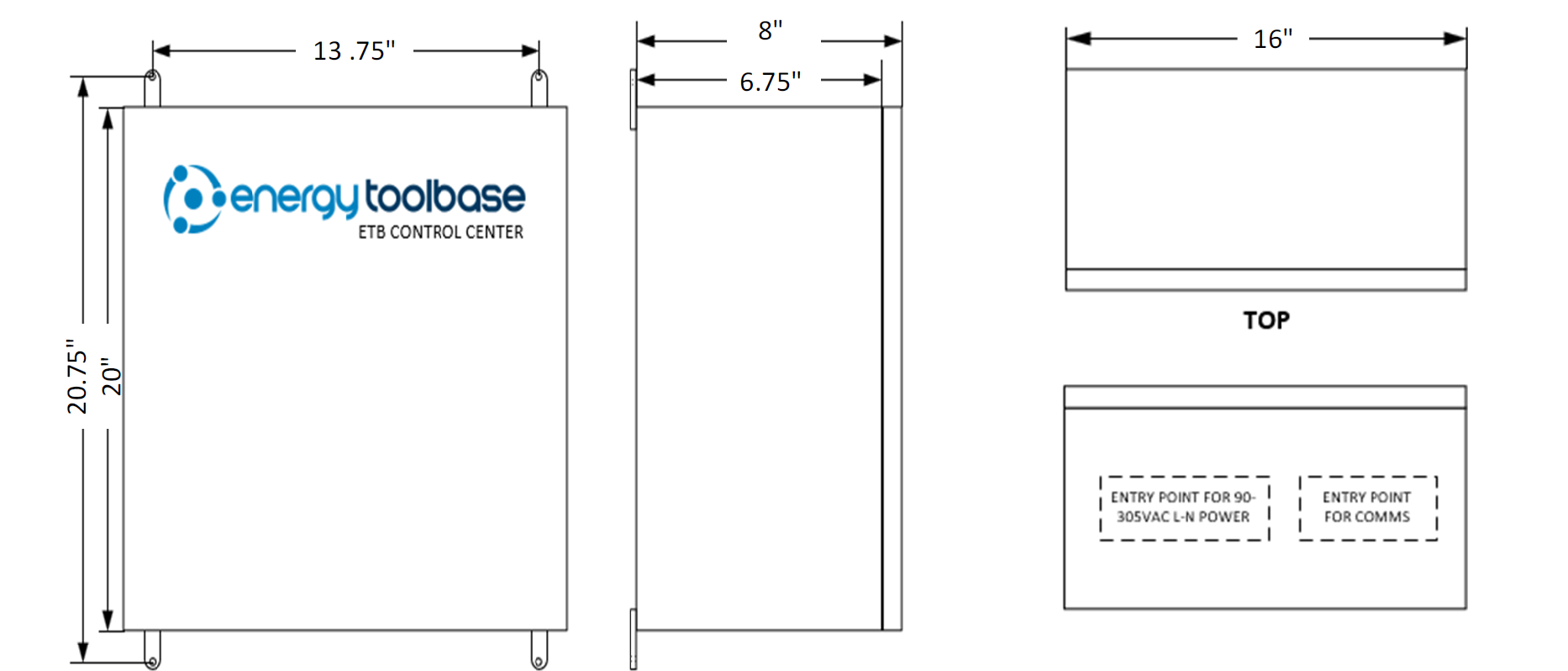 The ETB Control Center is a 20" H x 16" W x 7.5" D enclosure that comes with everything mentioned above in the kit of parts, pre-installed inside the enclosure for your specific project.